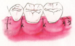 ゴアッテクスペリオメンブレンを使った再生による治療法は、歯周病により破壊された組織をもとに戻すことが可能です。